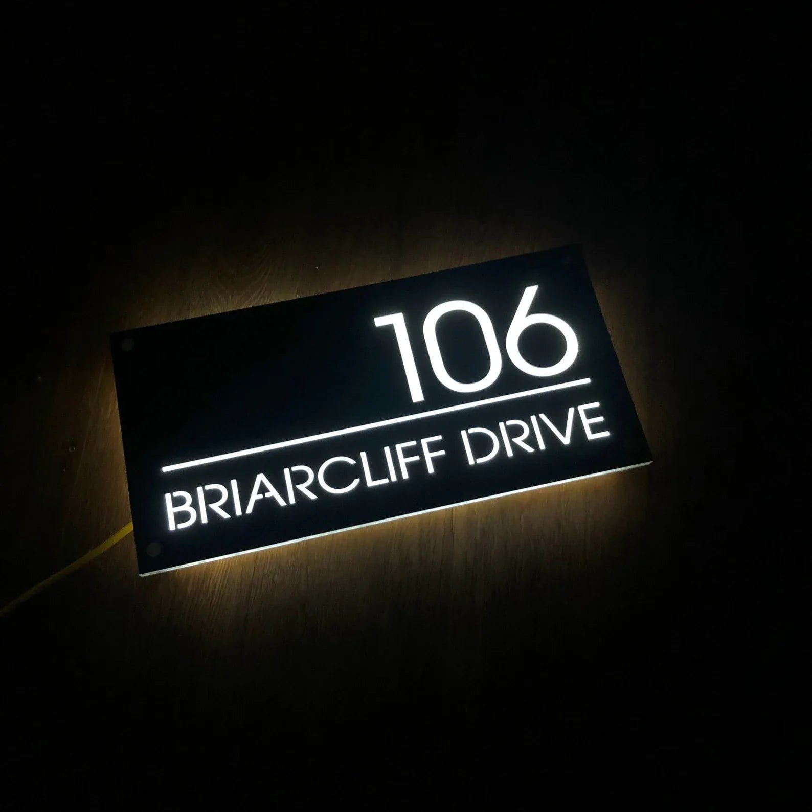 Valorizzate l'ingresso della vostra casa con la nostra elegante e moderna targa con numero civico personalizzato a LED. Questo design innovativo è dotato di fissaggi invisibili, che creano uno splendido effetto fluttuante su qualsiasi parete.