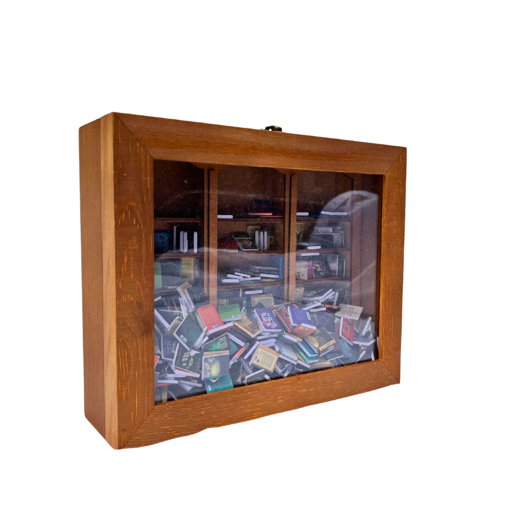 ハンドメイドの木製本棚は、不安な気持ちを和らげてくれます。ミニブックを片付けたら、ケースを閉じてラッチをはめてください。ストレスがぶり返したら、本棚を揺すってすべてを混ぜて、また始めましょう。)