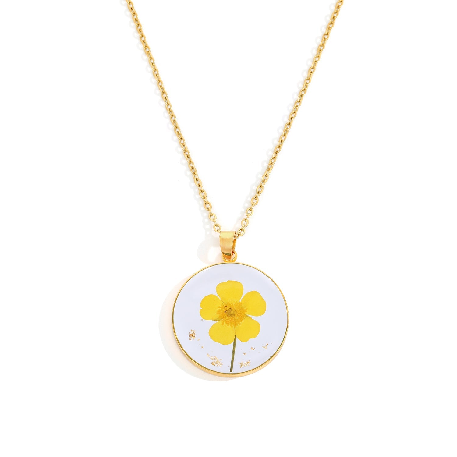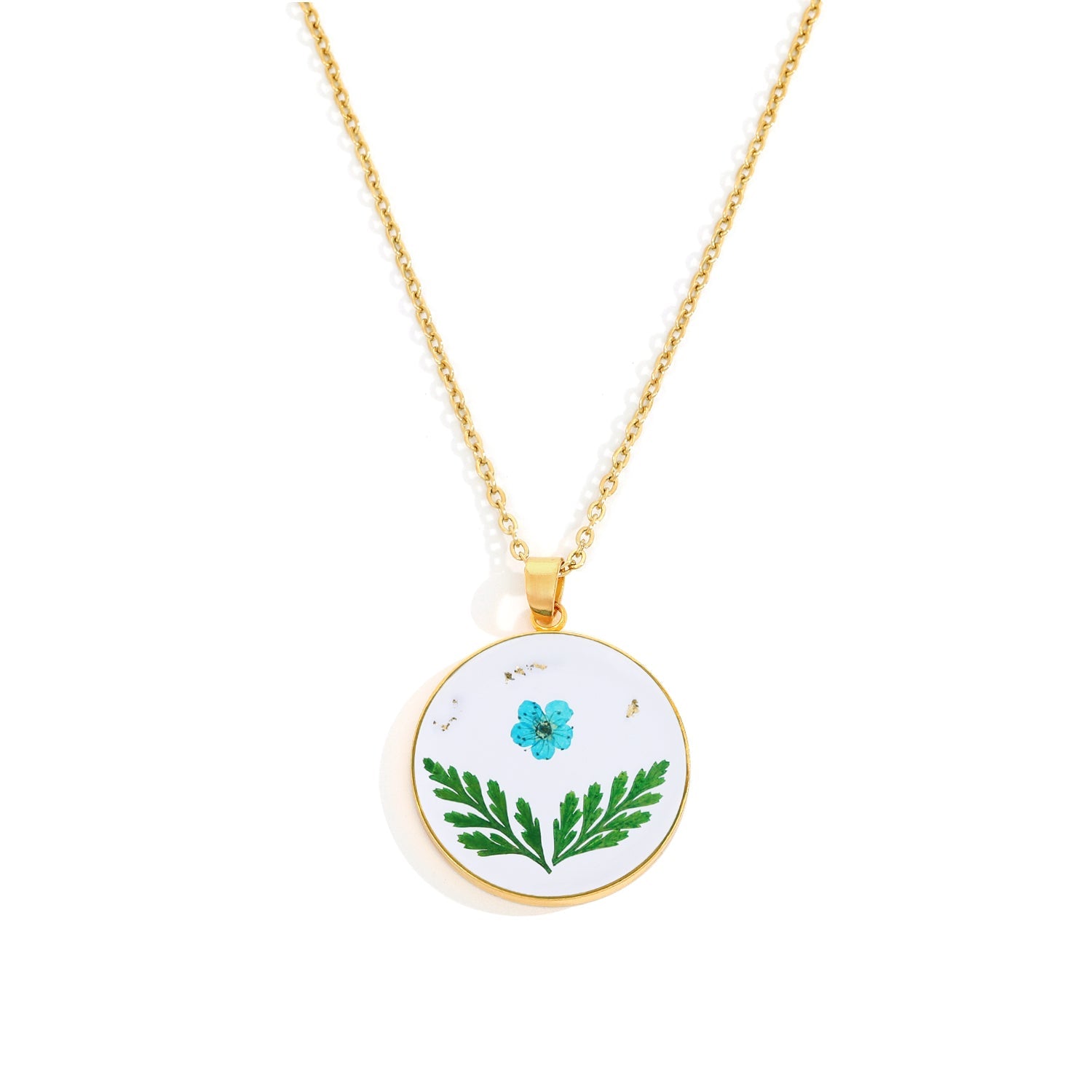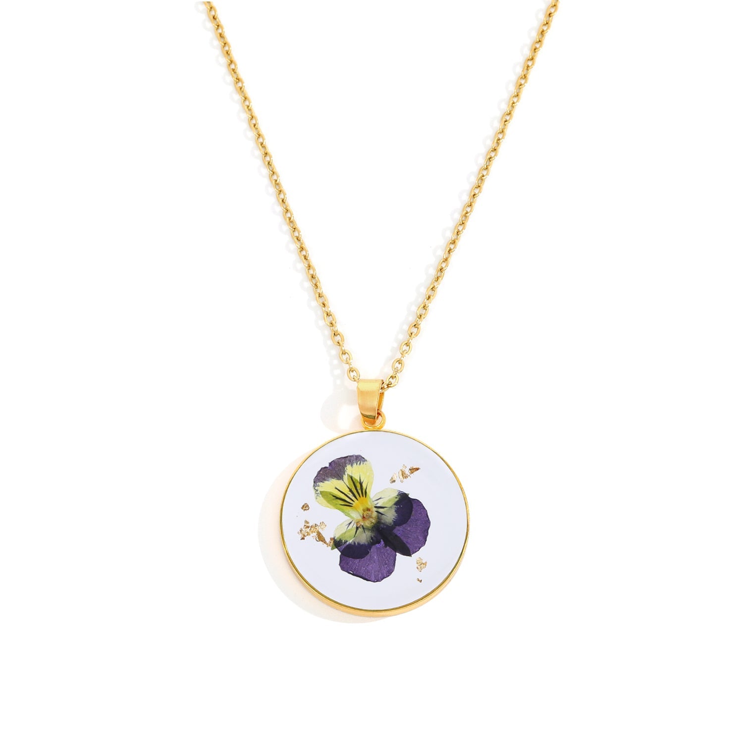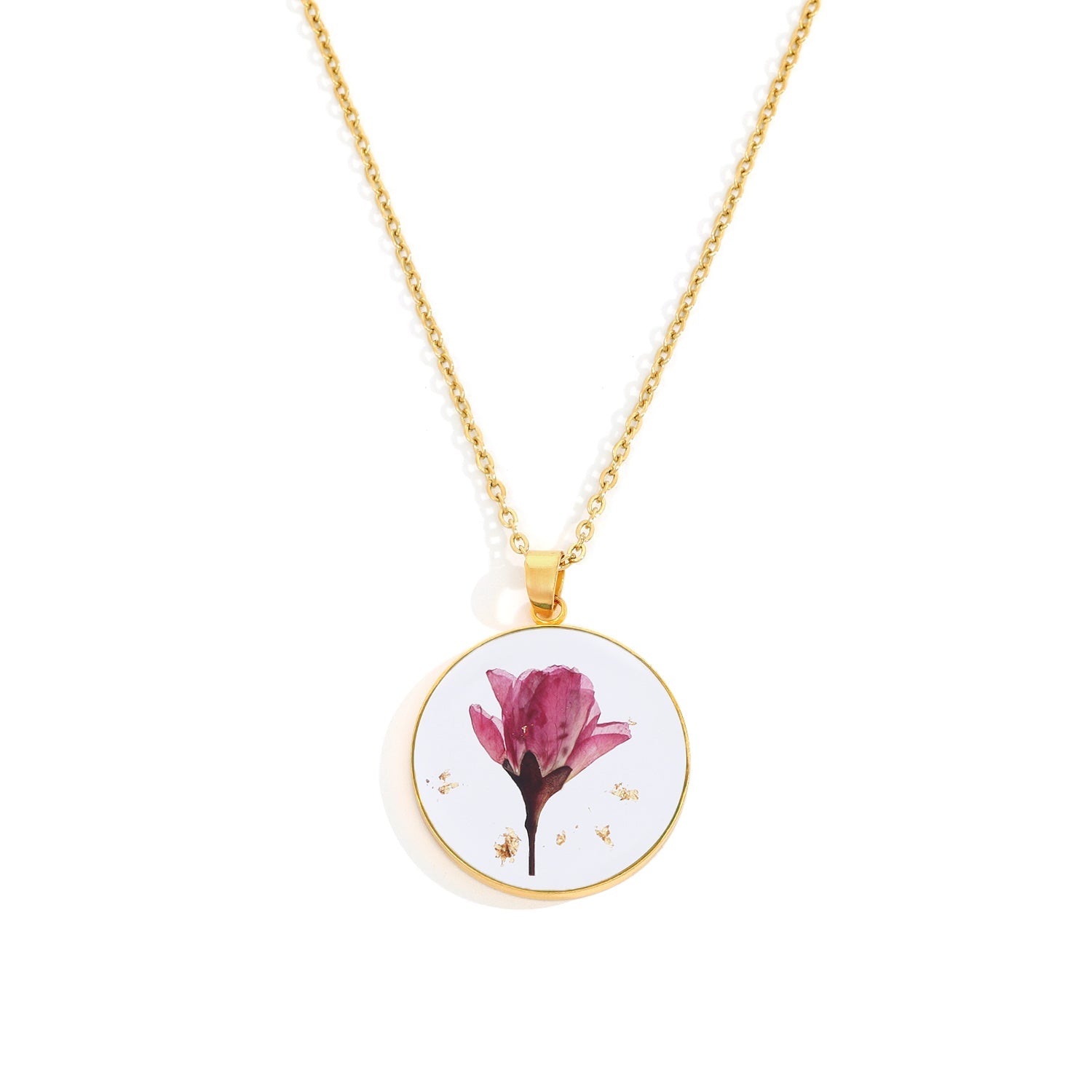 Přívěsek je ručně vyroben ze skutečných lisovaných květů zalitých v pryskyřici a je navržen tak, aby zachoval krásu přírody po celý život.